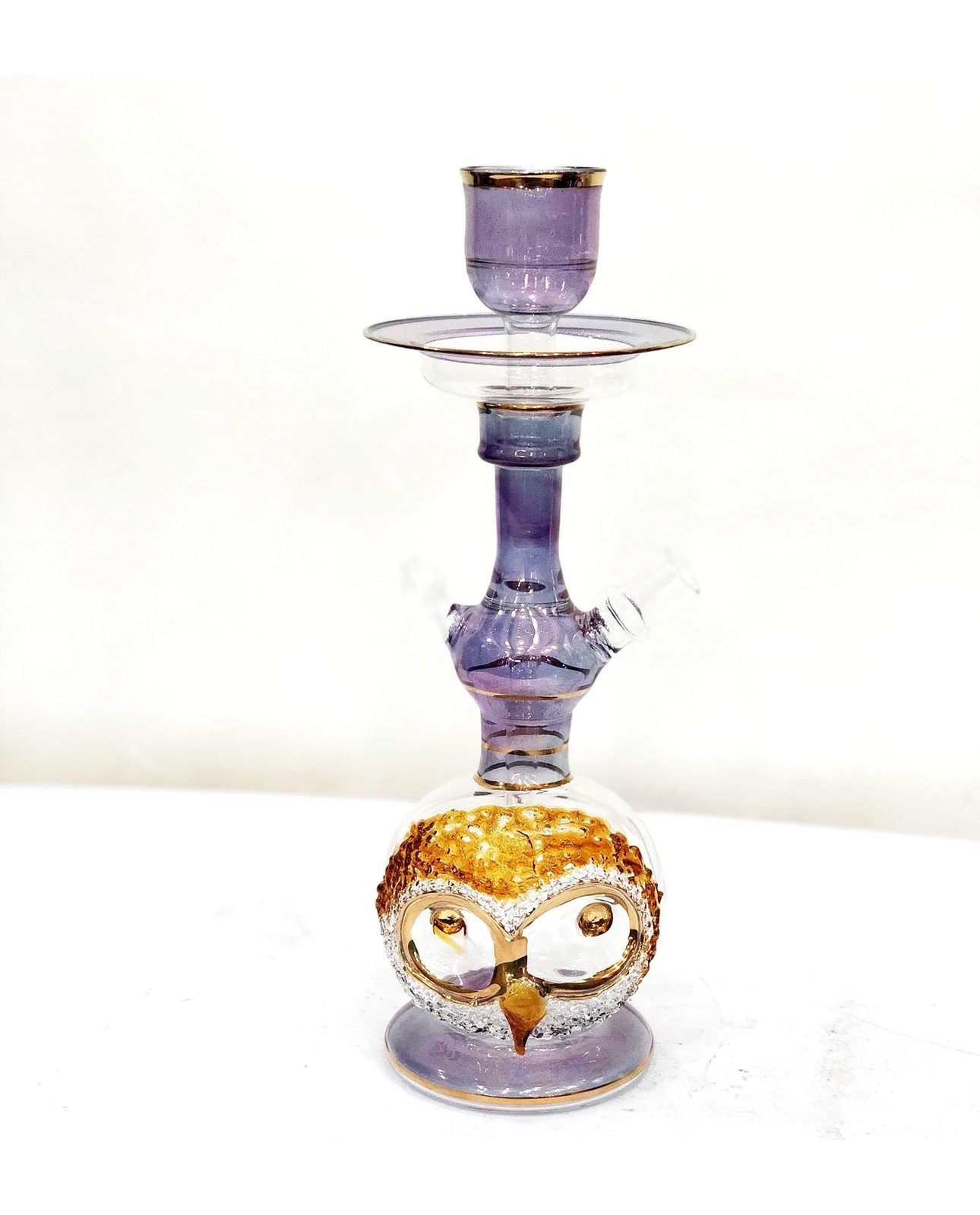 Medium size all glass owl Range in varieties of vibrant colors decorated with 24 crt gold