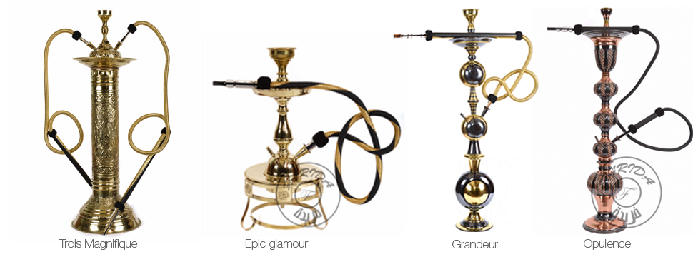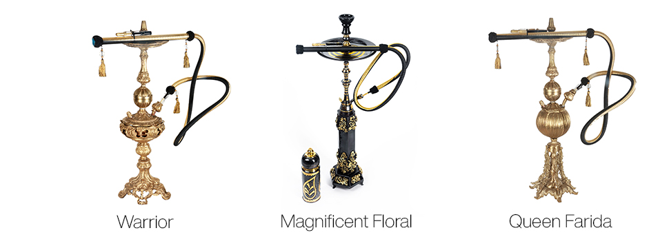 This standout range truly showcases the skill and ingenuity of our master craftsmen. Molten lead is poured behind the brass to strengthen it and enable our artisans to hammer and mold the most intricate and detailed of designs. The lead is then removed and what remains are hookahs that are not a pleasure to use but a pleasure to behold.